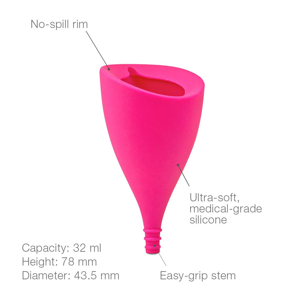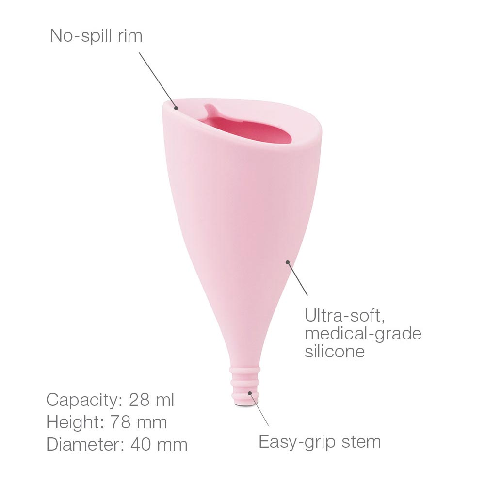 This menstrual cup has a slanted design and a spill-proof rim to fit your body’s natural curves and keep up with your active lifestyle all period long. With higher capacity and a longer stem, it is ideal for women with higher cervixes and a heavy flow.